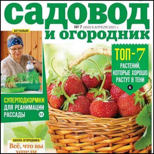 «Садовод и огородник №7, апрель 2021» — журнал для начинающих и опытных садоводов и огородников, владельцев загородных участков и сельских жителей, всех желающих добиться максимального урожая с минимальными затратами. Только в «Садоводе и огороднике»: самые актуальные и полезные советы от ученых, а также проверенные толковые подсказки от садоводов-любителей. «Садовод и огородник» знакомит своих читателей с современными технологиями и народным опытом выращивания овощных, плодовых, ягодных и лекарственных культур, разнообразием садовых и комнатных растений. Рассказывает, как защитить урожай от болезней и вредителей и сохранить его без потерь. Отдельный блок посвящен еме обустройства и дизайна участка, владельцам домашних животных и птицы. «Садовод и огородник» — вместе к высоким урожаям! Читать онлайн и скачать бесплатно на "МАЛО ВРУ": https://malovru.ru/category/6-sotok/